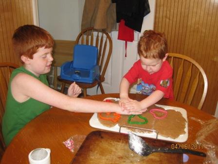 We made cookies today. It was a huge mess, but it was worth it. The boys had a blast. It’s one of those times that makes a mom wish she had recorded the whole thing to watch 20 years from now.