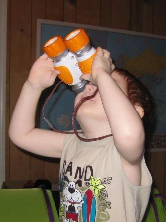 | He also got new “noclars”. He uses them to search the shelves to find which puzzle he wants next. |