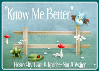 “Know Me Better” is a new weekly meme hosted by I Am A Reader Not A Writer. Each week five questions are asked as a way for your readers to get to know you better. Want to play along? It’s easy! Just click the link above to take you over to the host’s page. From there, copy and paste the meme image into your blog along with the meme code. Link back to the host and you’re done.